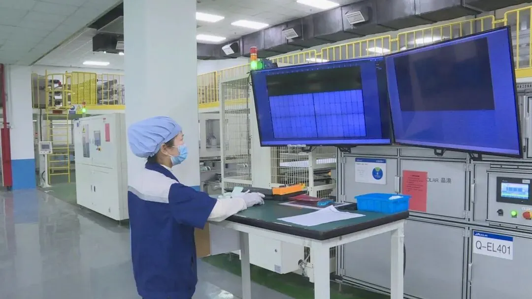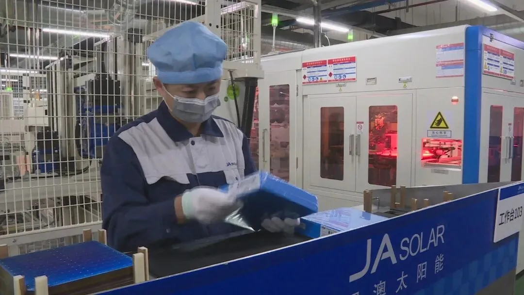 上海晶澳太阳能科技有限公司车间主管王志鹏表示,疫情影响逐渐消除,今年的产能预计会得到一些释放,目前行业发展比较好,订单也比较饱满,出货量也变得更大了。“开局就是决战,起步就是冲刺!我们要抢抓机遇促生产,车间24小时不停产,分两班倒接力工作。”