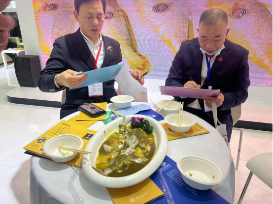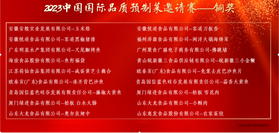 为贯彻落实中央经济会议精神和2023中央一号文件关于“培育发展预制菜产业”的要求,助力餐饮企业提振信心,推动预制菜企业高质量、品牌化、产业化发展,推进到家餐饮消费、产业、技术三升级,中国饭店协会和中国食材电商节组委会共同组织了中国国际品质预制菜邀请赛。评审专家前往国信水产展位,品尝了国信水产的预制菜系列——“藤椒大黄鱼”。凭借着大黄鱼蒜瓣肉质、味道鲜美、无土腥味,获得了评审专家的一致好评。经过组委会综合评选,国信水产·蒜香大黄鱼、藤椒大黄鱼均获得铜牌。