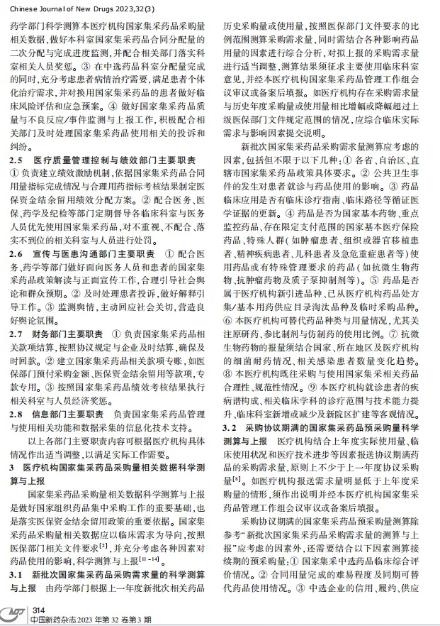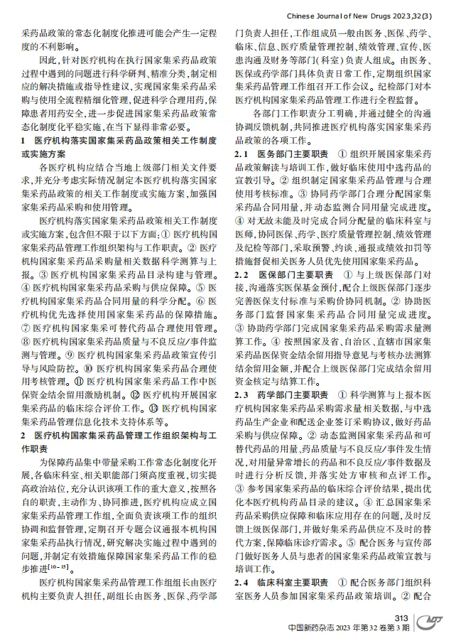 ①医疗机构国家集采药品管理工作组织架构与工作职责。