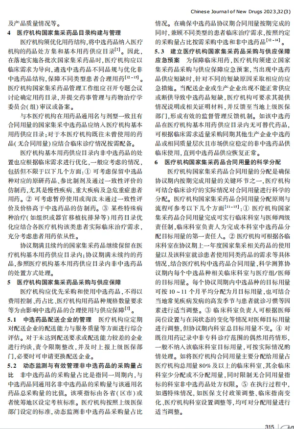⑤医疗机构国家集采药品合同用量的科学分配。