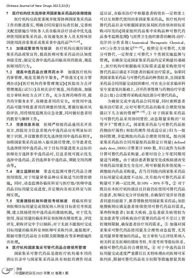 ⑦医疗机构国家集采可替代药品合理使用管理。