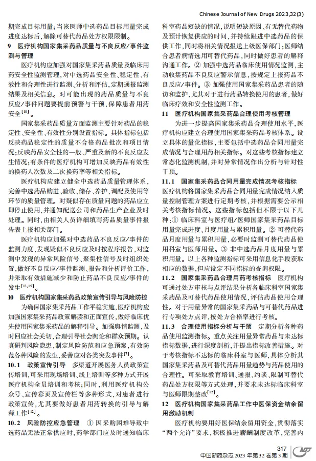 ⑨医疗机构国家集采药品政策宣传引导与风险防控。