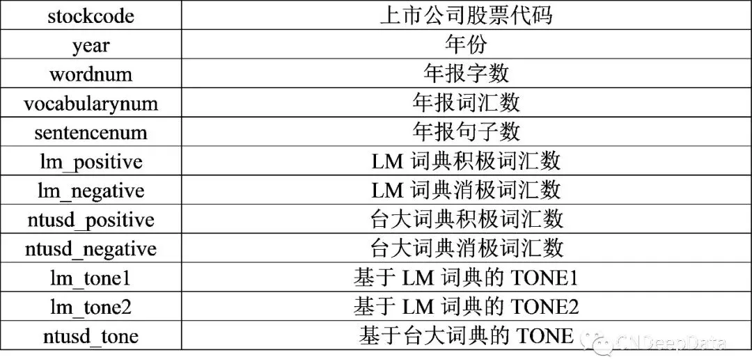 LM_TONE1=(积极词汇数-消极词汇数)/年报词汇数,LM_TONE1值越大,表示年报文本信息语气越积极;