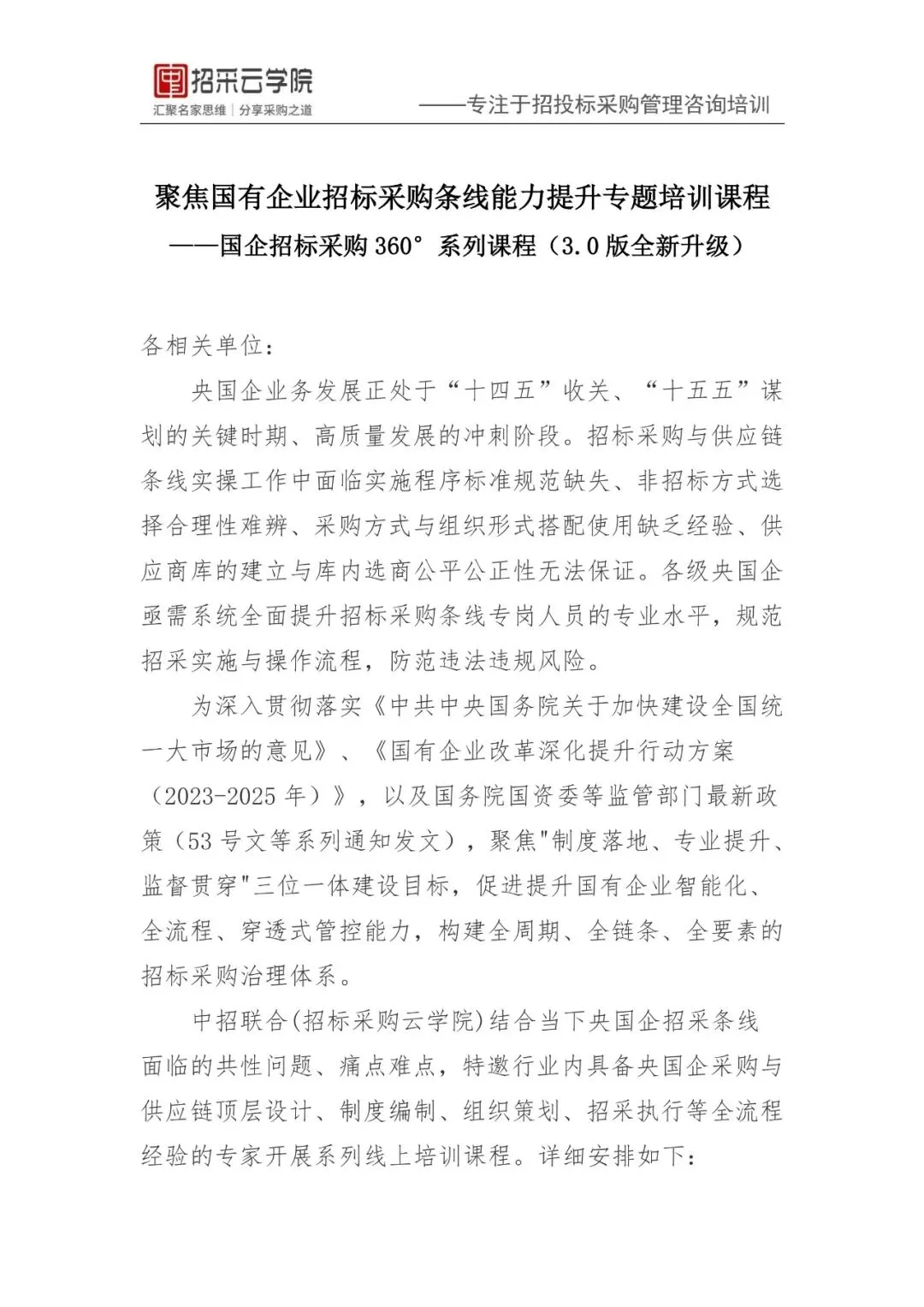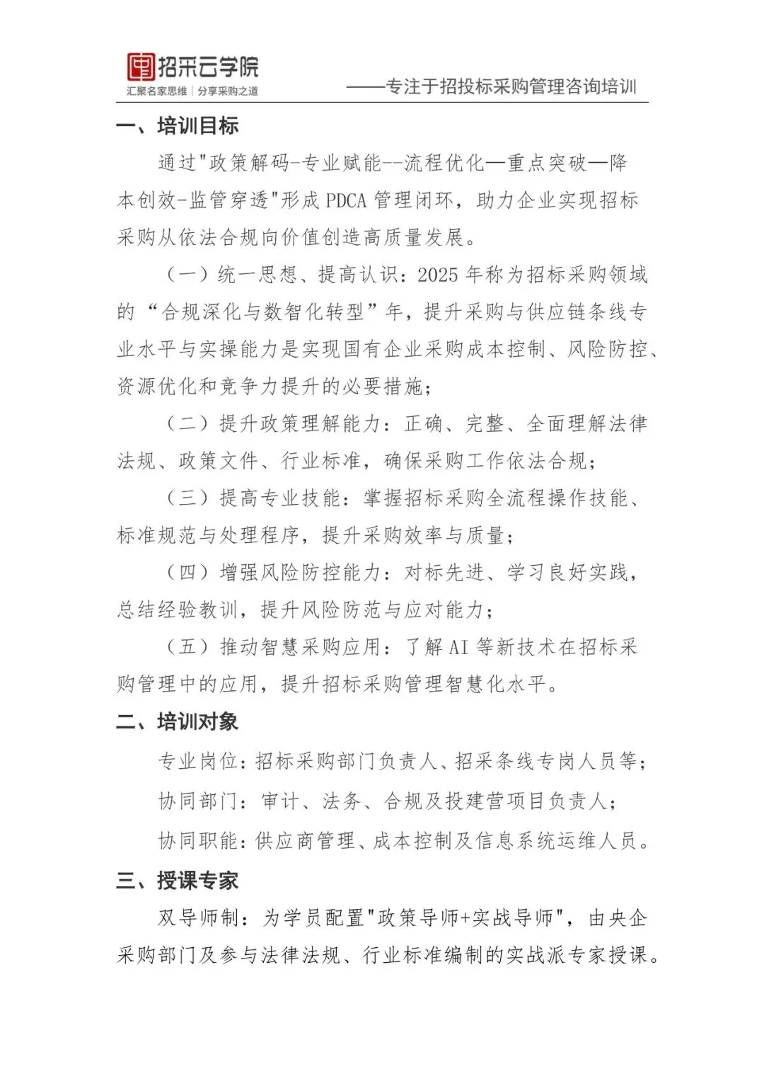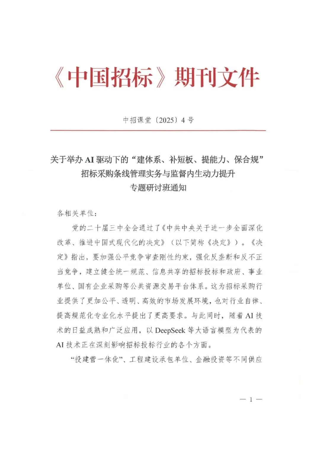 关于举办 AI驱动下的“建体系、补短板、提能力、保合规’招标采购条线管理实务与监督内生动力提升专题研讨班通知