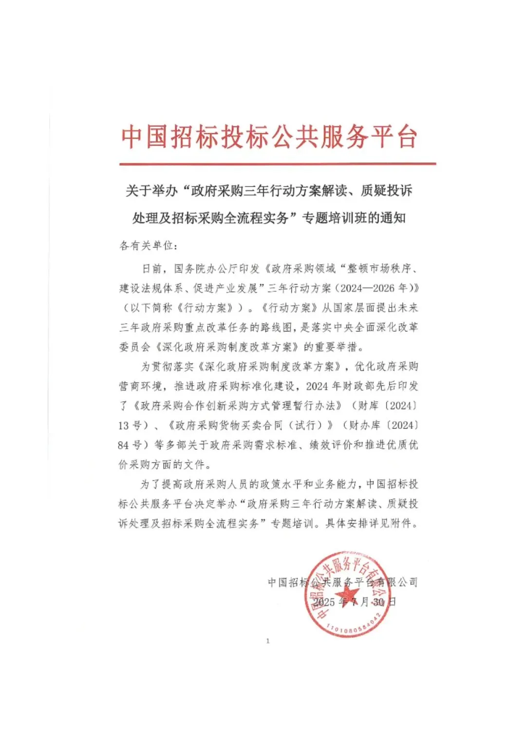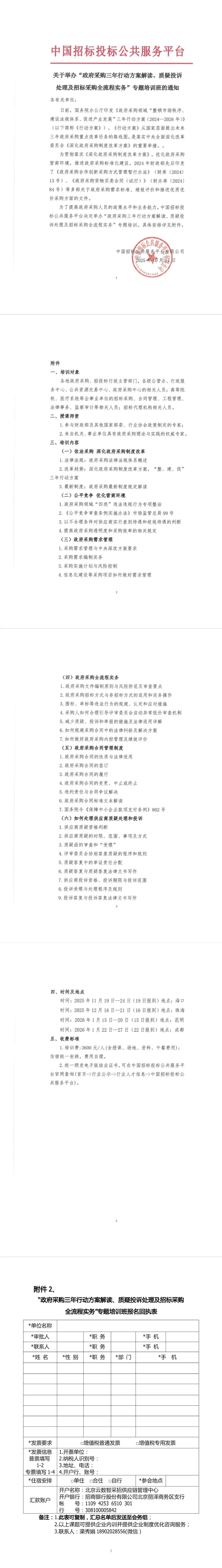 关于举办“政府采购三年行动方案解读、质疑投诉处理及招标采购全流程实务”专题培训班的通知