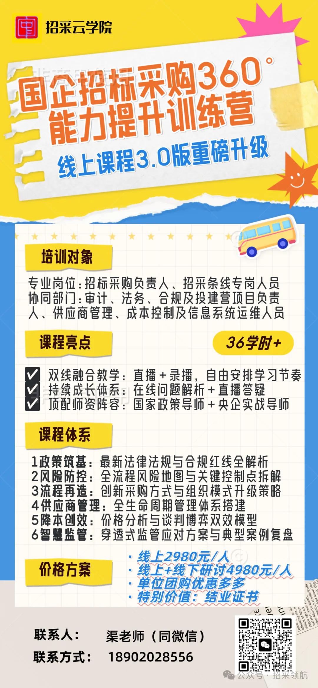 央国企从事投资决策、招标采购、物资采购、供应链管理基建、内控风险管理、纪检监察、财务审计、法务等工作的部门及工作人员;招投标行业监管部门、招标代理机构等从业人员。