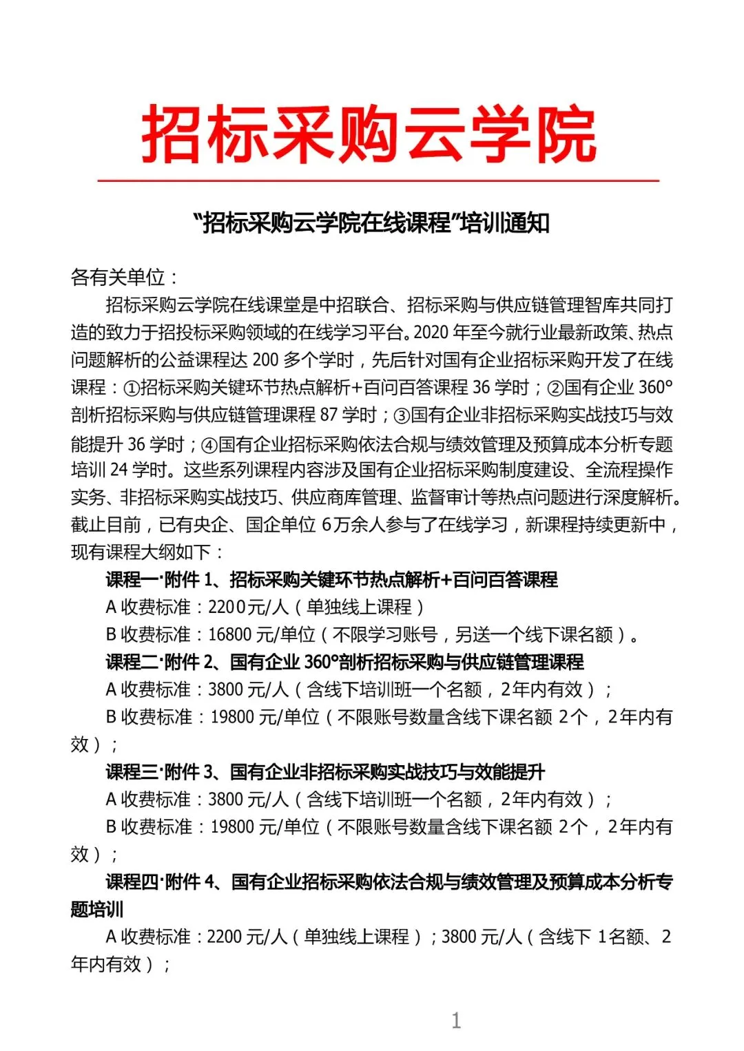 关于举办“新时代政府采购新政解读与央国企招标采购全流程管控、供应链管理及招投标风险防范专题培训班”的通知