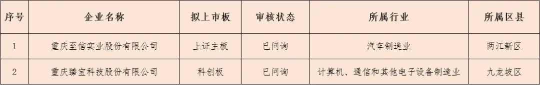 截至10月31日,重庆共有拟上市公司28家,其中在审企业2家,辅导备案公司26家。