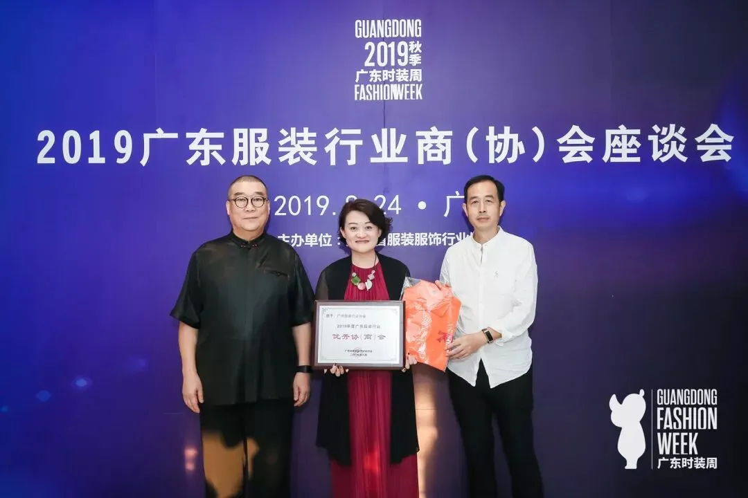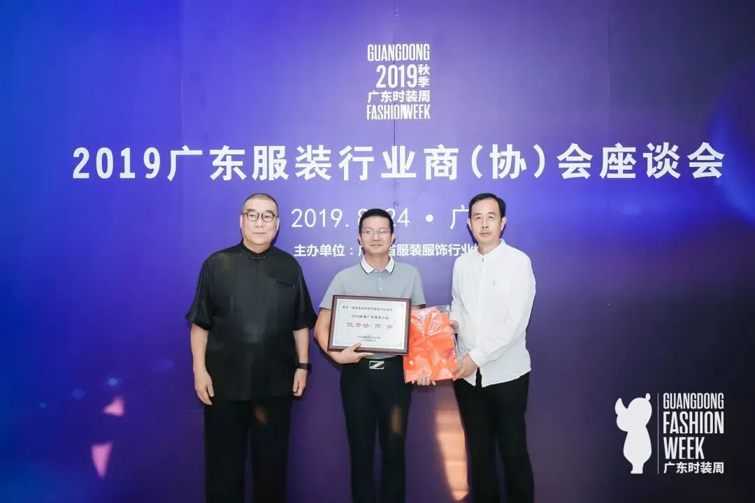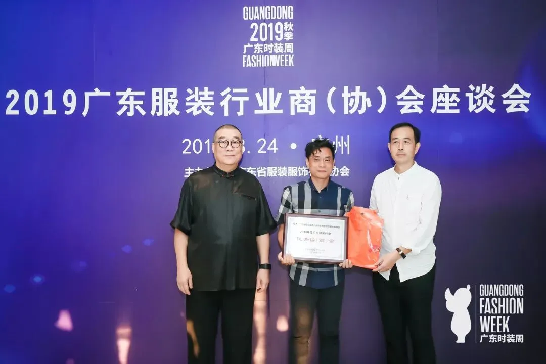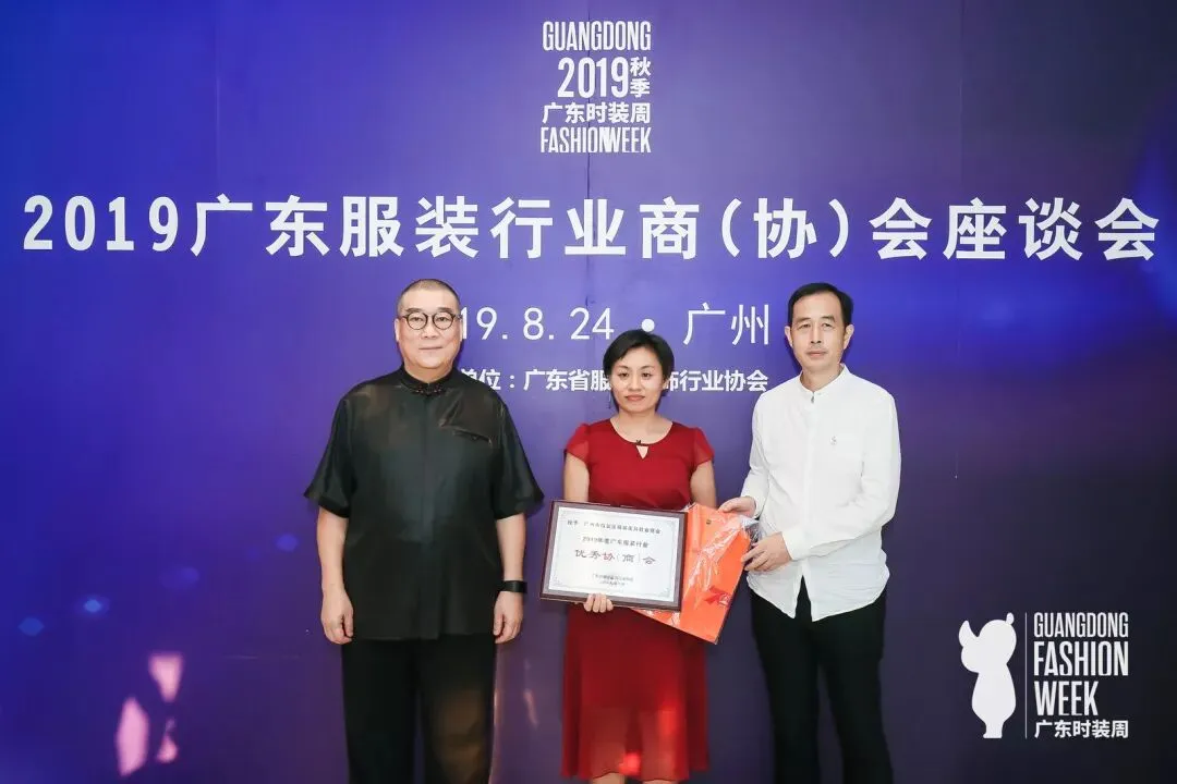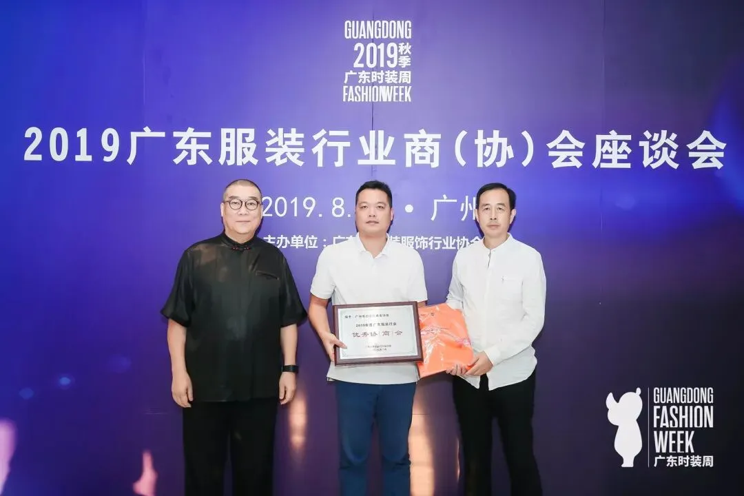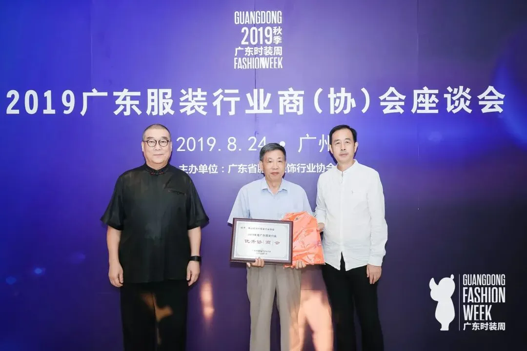 座谈会上,主办方还举办了“2019年度广东服装优秀协(商)会”的颁牌仪式,省服协红棉时尚分会等14家单位获此殊荣。广东省服装服饰行业协会会长卜晓强、执行会长刘岳屏逐一为他们颁发荣誉牌匾,并赠予致敬建国70周年纪念服装。