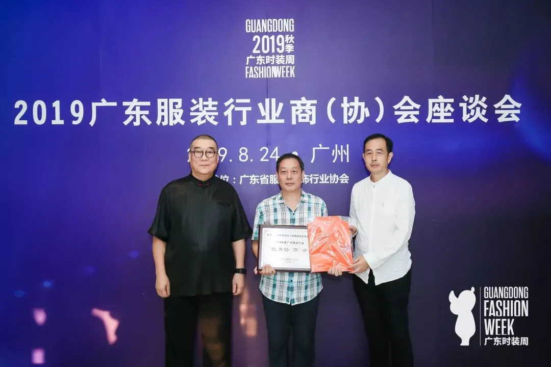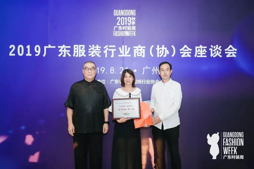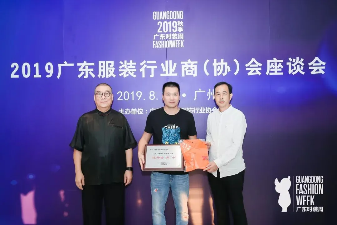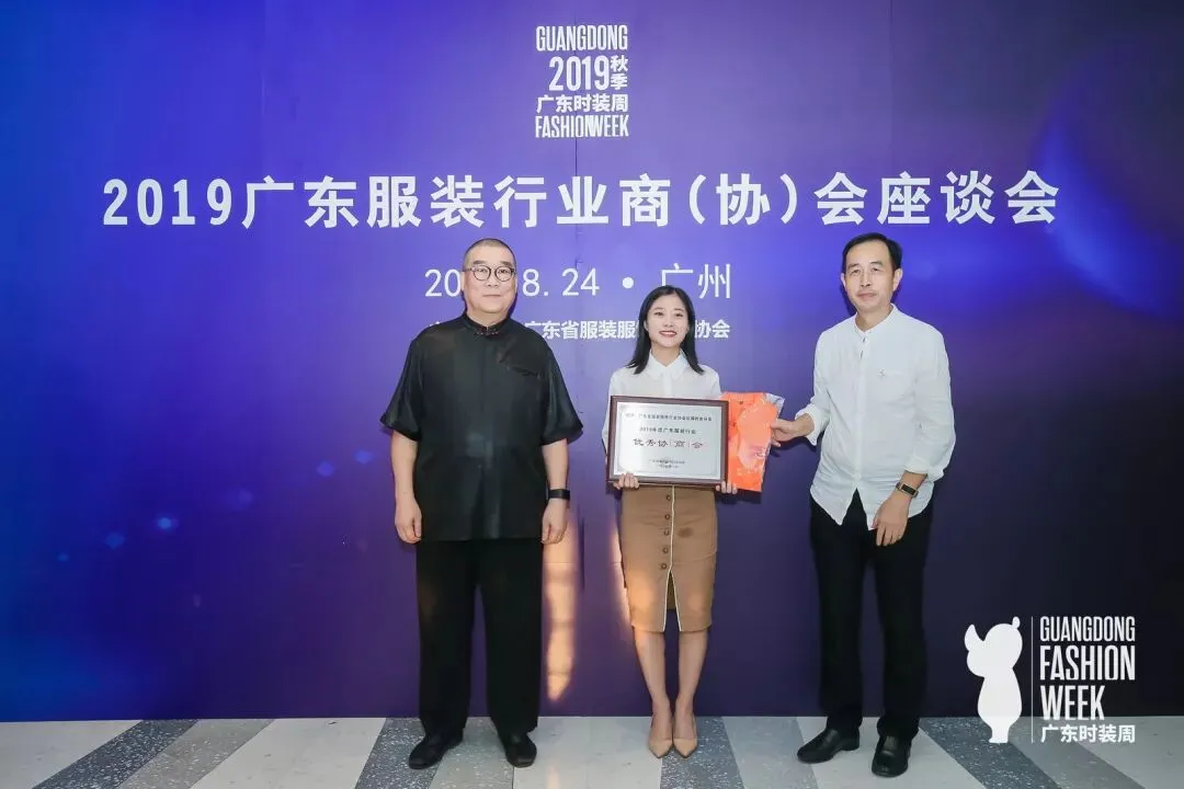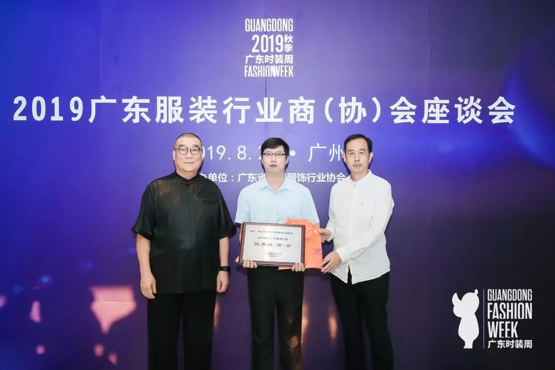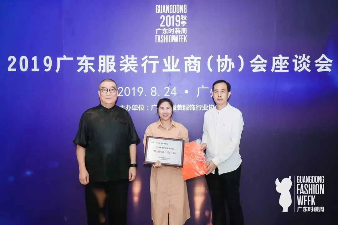 座谈会上,主办方还举办了“2019年度广东服装优秀协(商)会”的颁牌仪式,省服协红棉时尚分会等14家单位获此殊荣。广东省服装服饰行业协会会长卜晓强、执行会长刘岳屏逐一为他们颁发荣誉牌匾,并赠予致敬建国70周年纪念服装。
