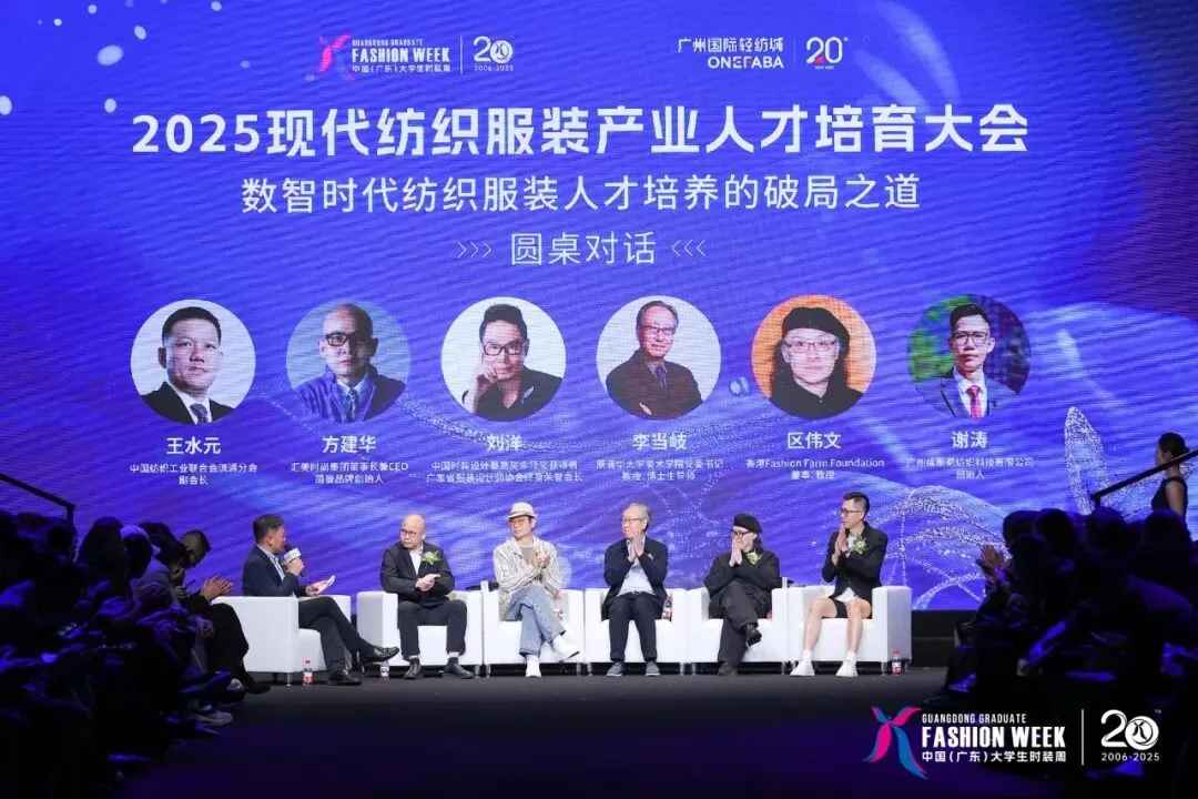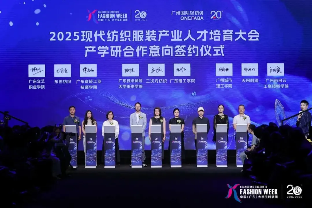 20年来,始创于2006年的中国(广东)大学生时装周主动承担“人才孵化器”和“产业引擎”双重角色,累计参与国内外高校55所,为产业输送专业人才超20万名,链接纺织服装企业超20万家,促成产学研合作项目超1000项,间接带动产值增长超百亿元,让中大纺织商圈成为了中国时尚新锐力量茁壮成长、成才的理想沃土,与海珠区“人工智能大数据及现代纺织服装产业人才开发”项目更是高度契合、一脉相承。2025现代纺织服装产业人才培育大会以国家级阵容、大湾区视角,在中国(广东)大学生时装周这座梦想天桥上高规格举办,不仅为纺织服装产业数智化转型提供了新思路,更搭建起人才与产业共生共融的生态桥梁,为我国从“制造大国”迈向“时尚强国”注入着生生不息的强劲力量。