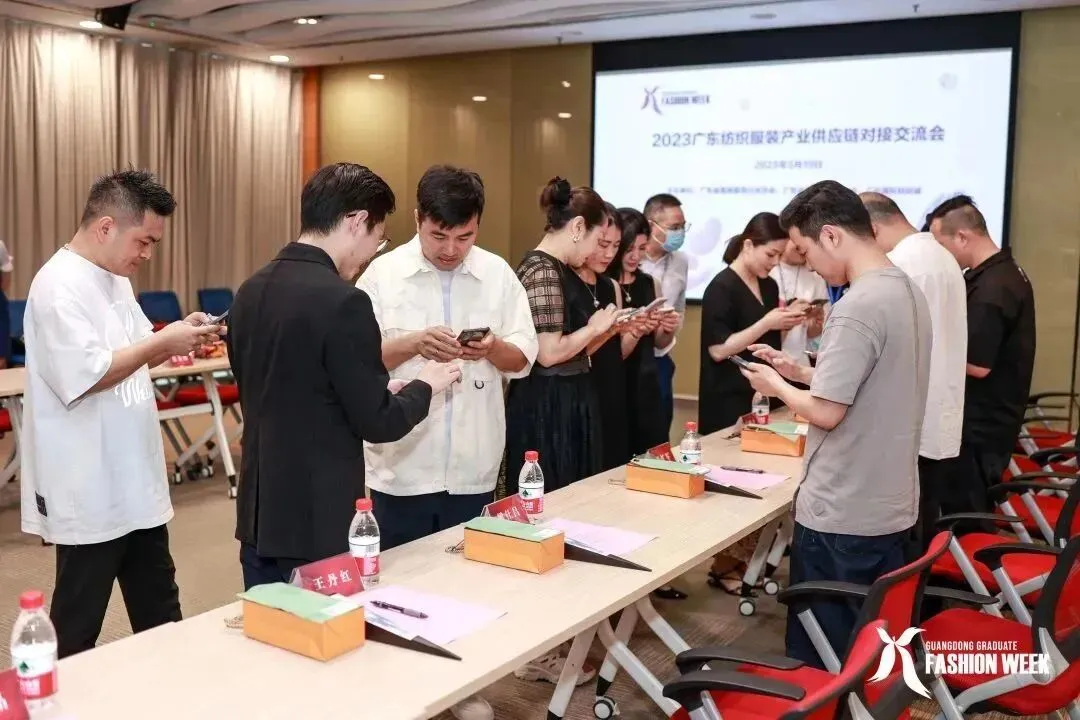 2023中国(广东)大学生时装周开幕首日,广东纺织服装产业供应链对接交流会在广州举办。作为大学生时装周针对供应链协同打造的面对面交流平台,本次交流会整合供应链上下游企业,汇聚行业领导、服装企业、设计师、面辅料企业、院校代表及服务平台,就行业共同关心的热点问题进行专题交流、研讨思辨。