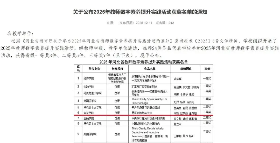 ﹣会展和营销系荣获2024-2025年度河北经贸大学优秀基层教学组织,赵学娇荣获"优秀基层教学组织负责人"荣誉称号。