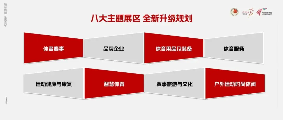 展会规模20000+平方米,围绕“展+赛+会+产”产业联动,搭建“体育+”生态平台,继续强化展会政策共享、展示推广、对接交易、国际交流四大功能。