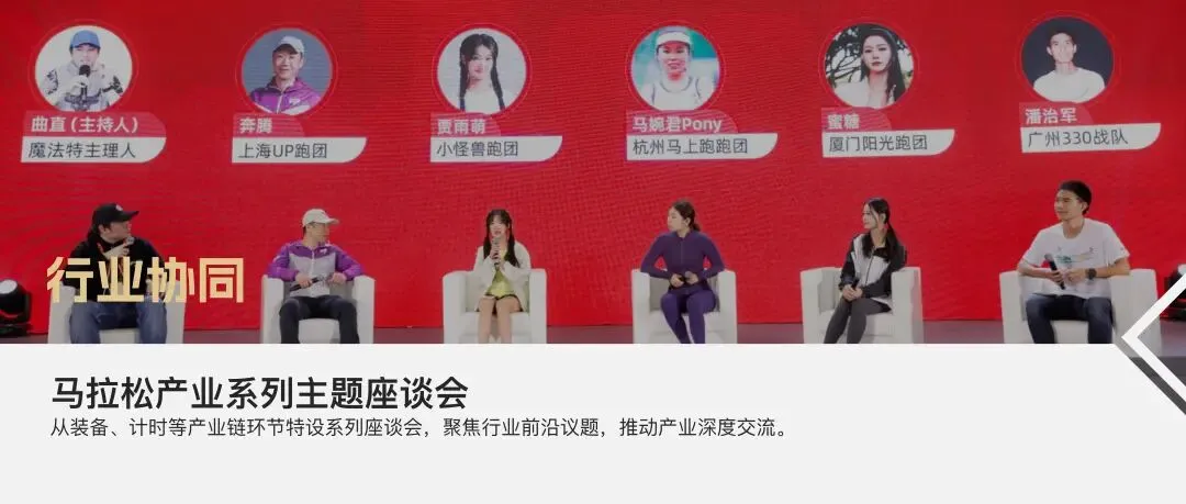马拉松产业正处于从规模增长转向高质量发展的阶段,行业协同发展的驱动作用日益显现。马拉松产业系列主题座谈会将在博览会期间举办,聚焦行业前沿议题,从城市、装备、计时等环节特设系列座谈会,以核心嘉宾对话、开放观众问答形式,推动产业交流,探讨解决方案与未来趋势。