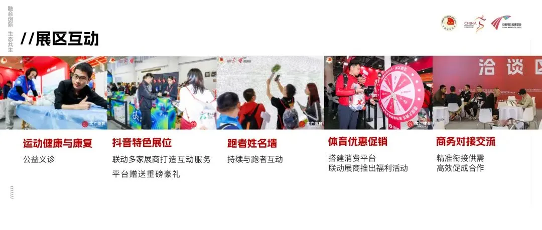 其中,体育赛事展区以路跑赛事为核心,吸引更广泛、更多元的全体育赛事文化及产业服务企业参展,不仅有中奥路跑、开承体育、有迈体育、云南行知探索体育等赛事运营方,更有北京、厦门、广州、天津、扬州等马拉松赛事组委会,共促马拉松产业高质量发展,助力打造国内外体育赛事展示推广权威交流平台。