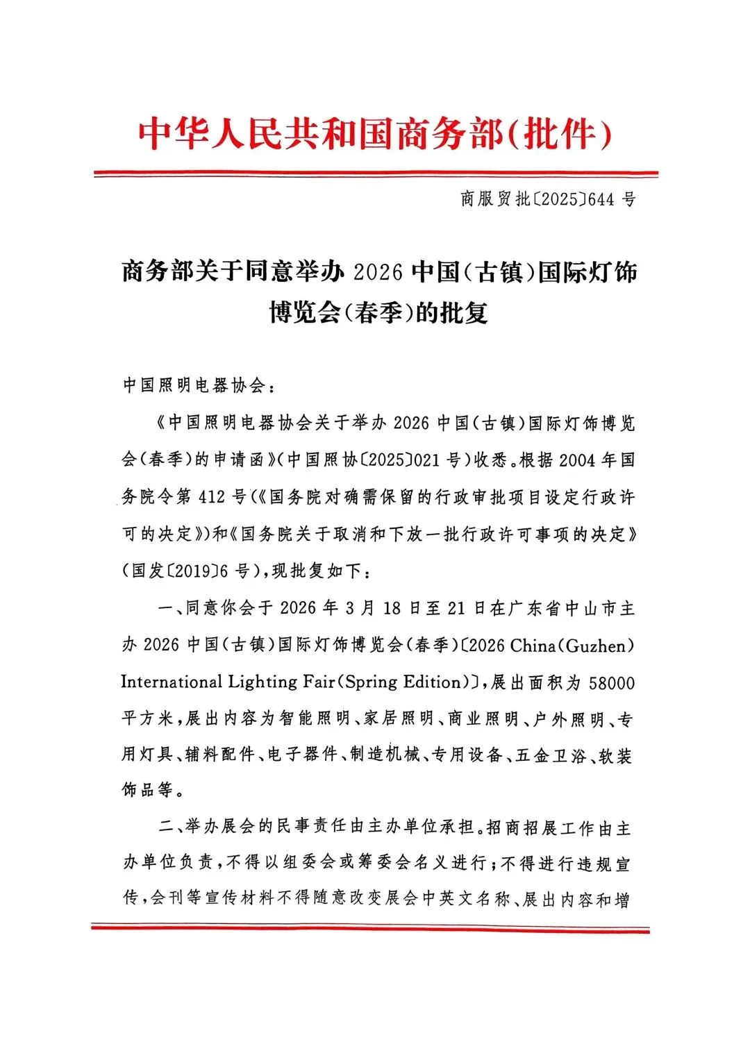 “2026中国(古镇)国际灯饰博览会(春季)”各项筹备工作已进入倒计时。我们诚邀全球照明产业同仁于2026年3月18-21日莅临中山古镇镇,共赴光影未来。