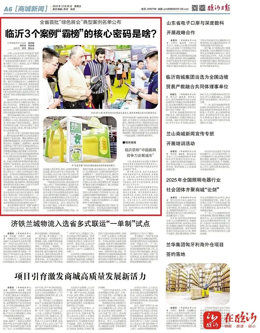 2025年,临沂市打造鲁南苏北区域会展中心城市持续发力,会展经济带动作用显著。第四届RCEP区域进口商品博览会、木博会、秋季五金展、全屋定制展、小商品展等展会相继成功举办。今年1至11月,全市已举办会展活动160余场次,专业展会94场,同比增长21%;展览面积187.17万平方米,同比增长11%。临沂会展业正成为商城转型发展的强劲引擎。