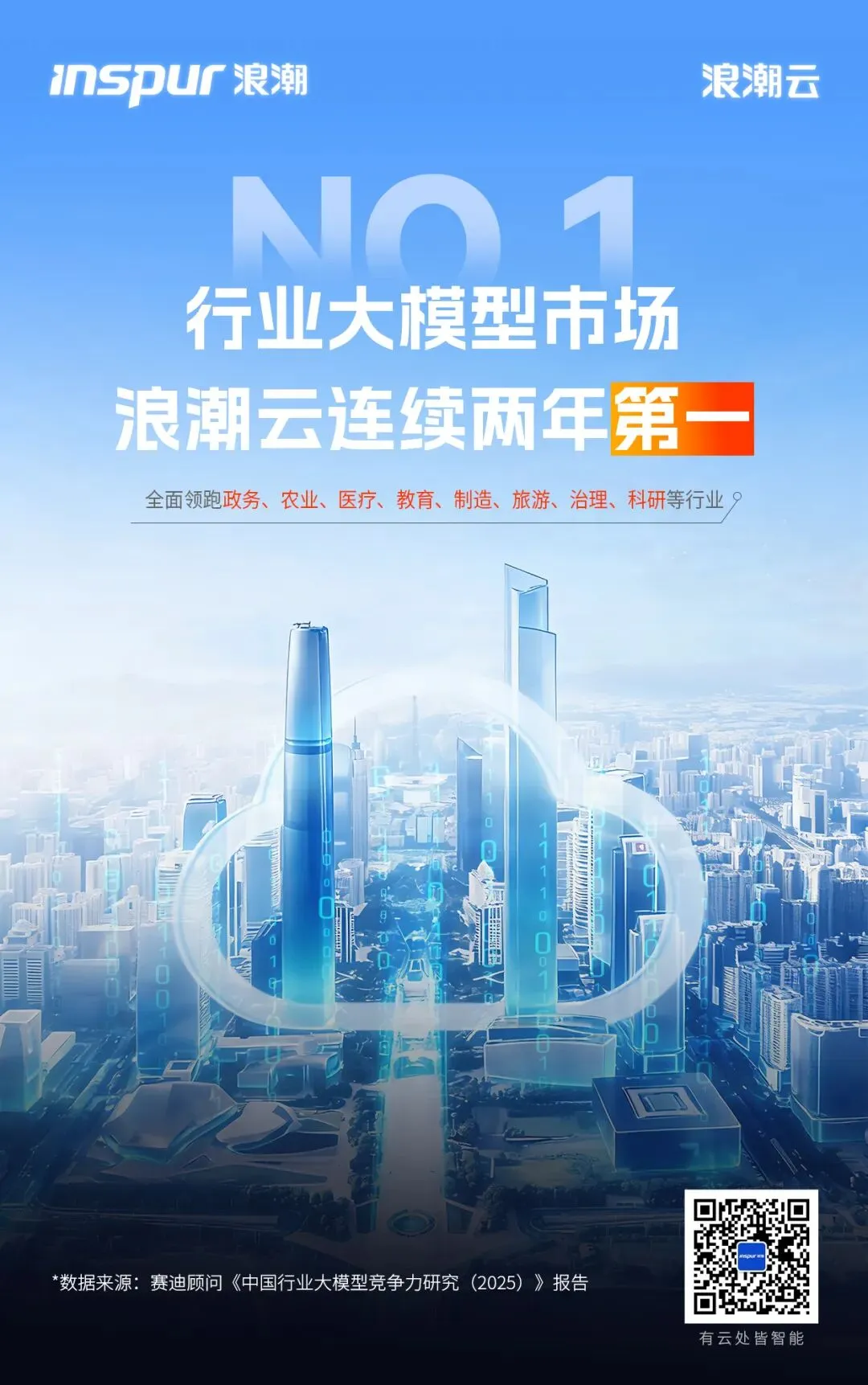 近日,赛迪顾问正式发布《中国行业大模型竞争力研究(2025)报告》(下称:报告),并从技术适配能力、行业应用能力、竞争能力、行业市场潜力、生态开放能力五个维度出发,全面、科学、系统地反映中国行业大模型企业发展态势,从而得到中国行业大模型二十强榜单,浪潮云稳居中国行业大模型市场第一位。