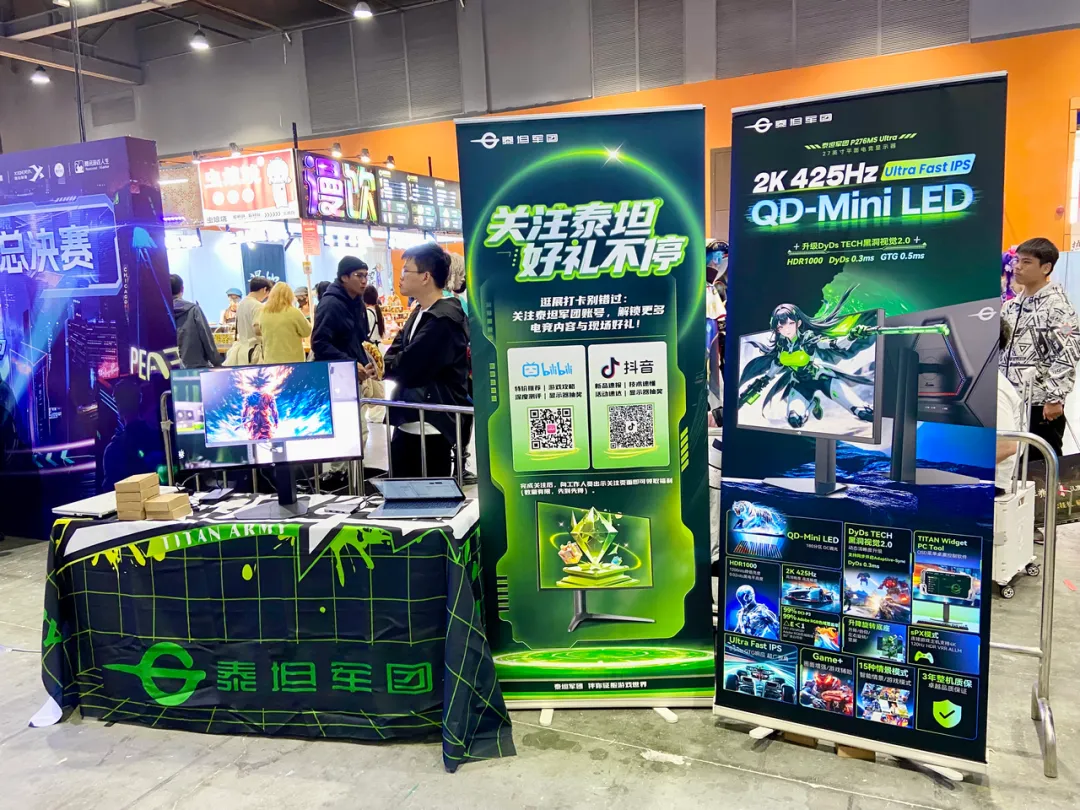 除了为赛事提供专业级的赛事用显示器外,泰坦军团还在现场搭建品牌专属展台,重磅展示旗下旗舰机型——泰坦军团P276MS Ultra电竞显示器。