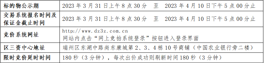 自由竞价时间 | 报名成功起至2023年4月11日15点30分止 |