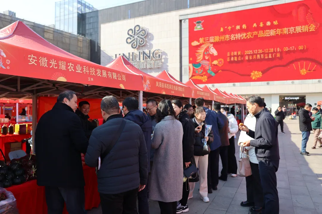 12月27-28日 ,由滁州市农业农村局、滁州市文化和旅游局主办,滁州市供销社协办的第三届滁州市名特优农产品迎新年南京展销会在南京市建邺区万达广场火热开幕。