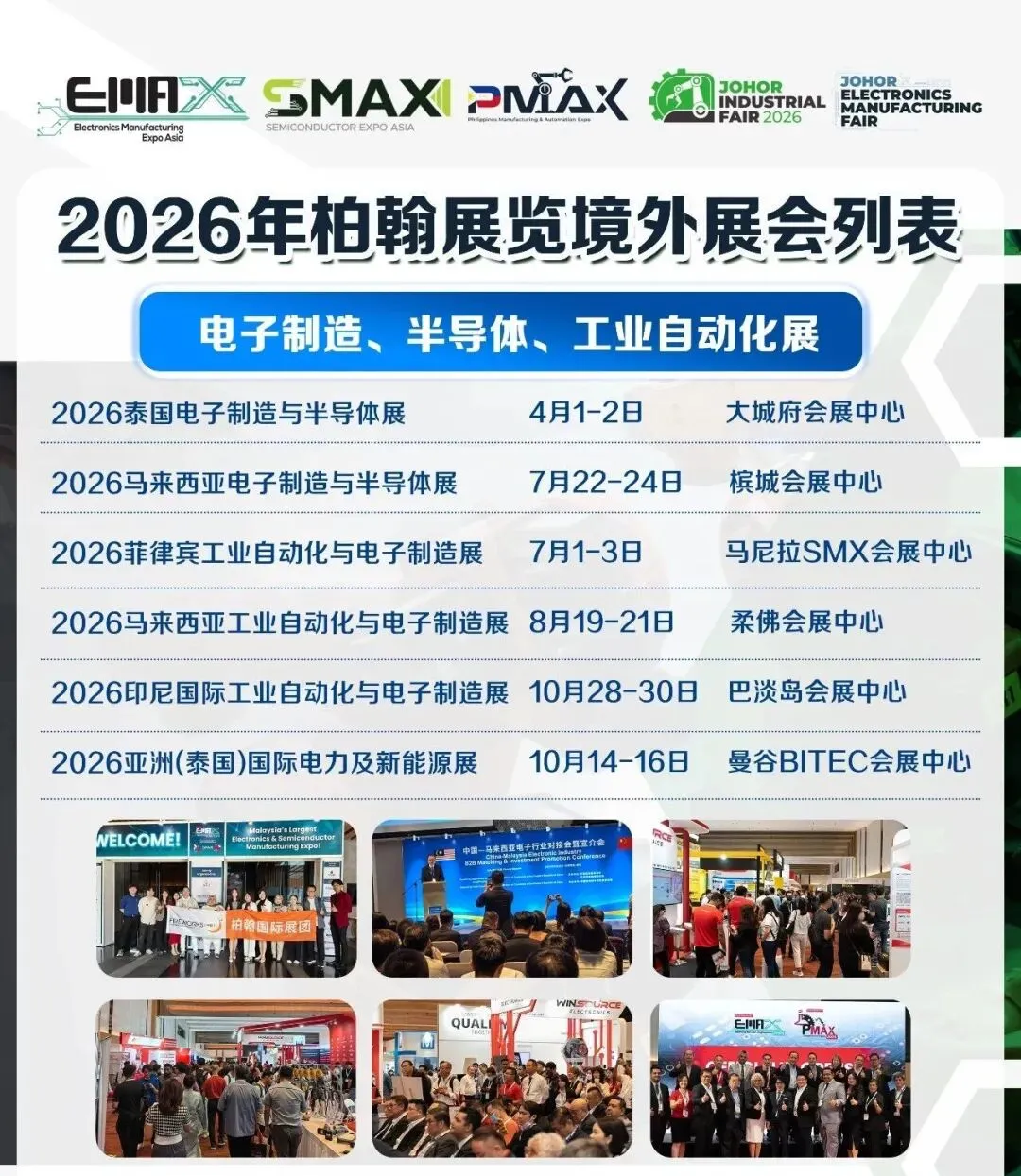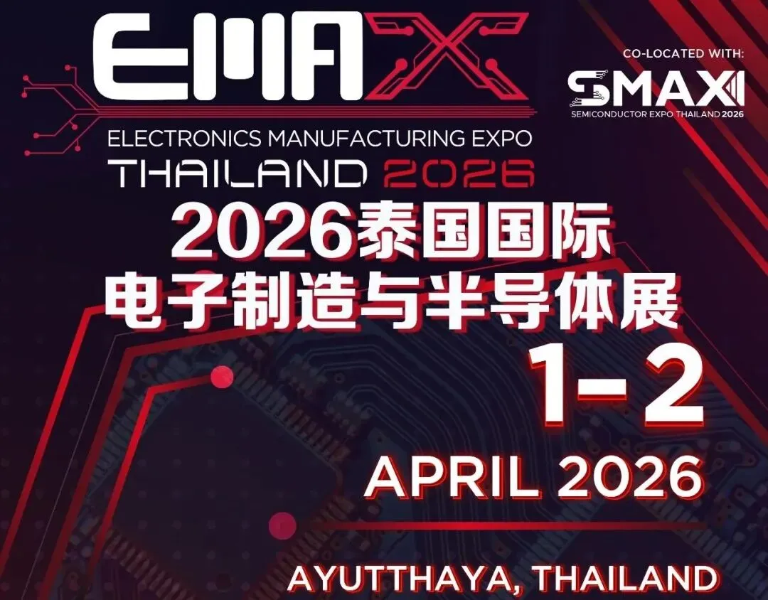 展会介绍:2026年泰国国际电子制造与半导体展(EMAX & SMAX THAILAND 2026)将在泰国蓬勃发展的电子制造中心大城府举办,展会得到泰国工业部、泰国电子协会等重要政府部门大力支持,也是泰国当地唯一最专业的电子制造和半导体展会。