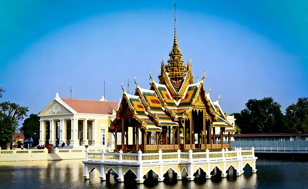邦芭茵夏宫位于泰国中部大城府,是泰国王室在曼谷以外的重要行宫居所。该建筑群始建于1632年大城王朝时期,后因战争荒废80年,19世纪拉玛四世、五世主导重建。夏宫融合中国式、缅甸式、哥特式三种建筑风格,其中天明殿作为国王寝宫采用典型中式园林风格建造,屋脊装饰双龙戏珠、丹凤朝阳等元素,好看又好拍。