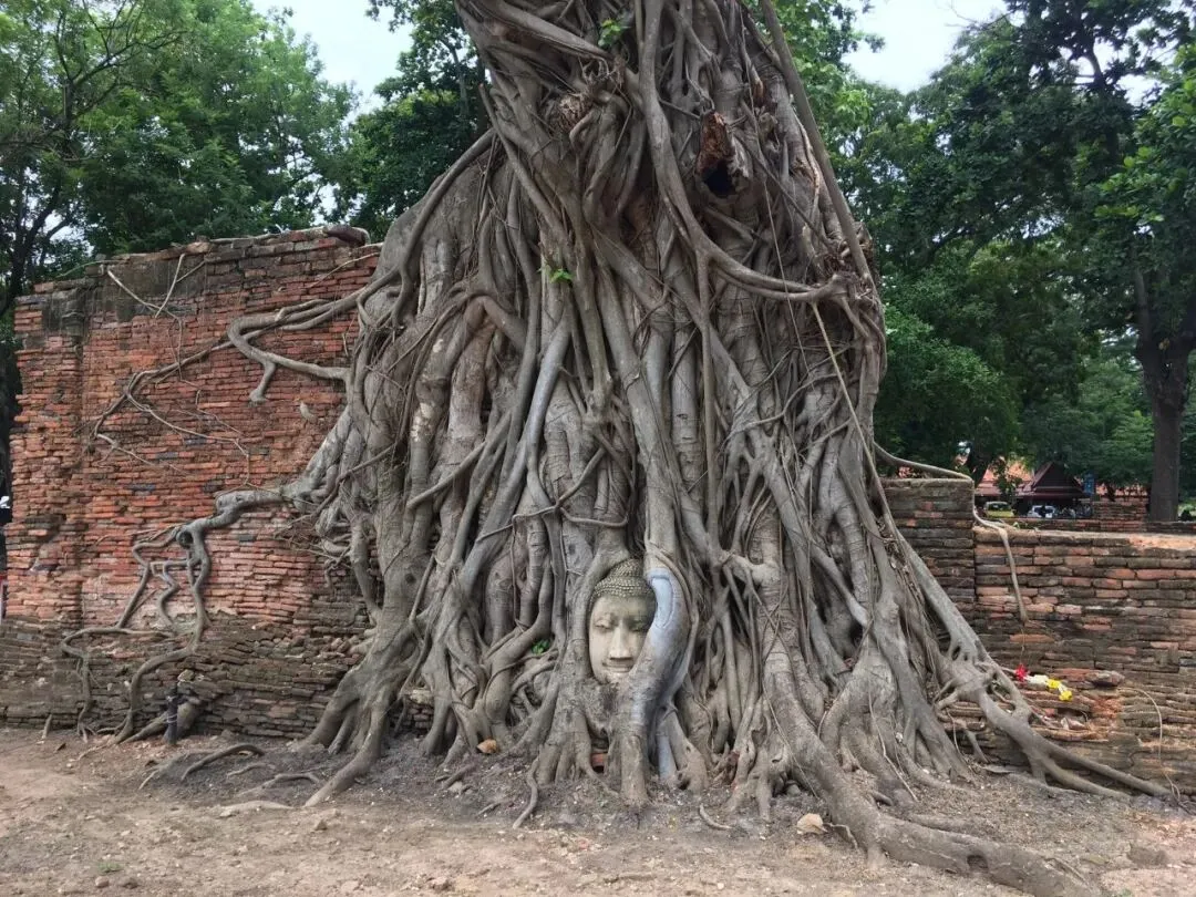玛哈泰寺位于大城历史公园,是泰国最早吴哥窟高棉式佛塔,虽受到战火摧残,却在寺庙地下室挖掘珍贵历史文物,其中以被菩提树包围住的「树中佛」,天然树中佛头面容安详,被视为泰国奇景,是大城景点必去。