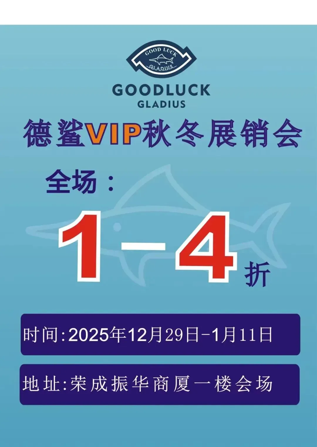 【荣成振华商厦】德鲨 | VIP秋冬展销会~全场1-4折