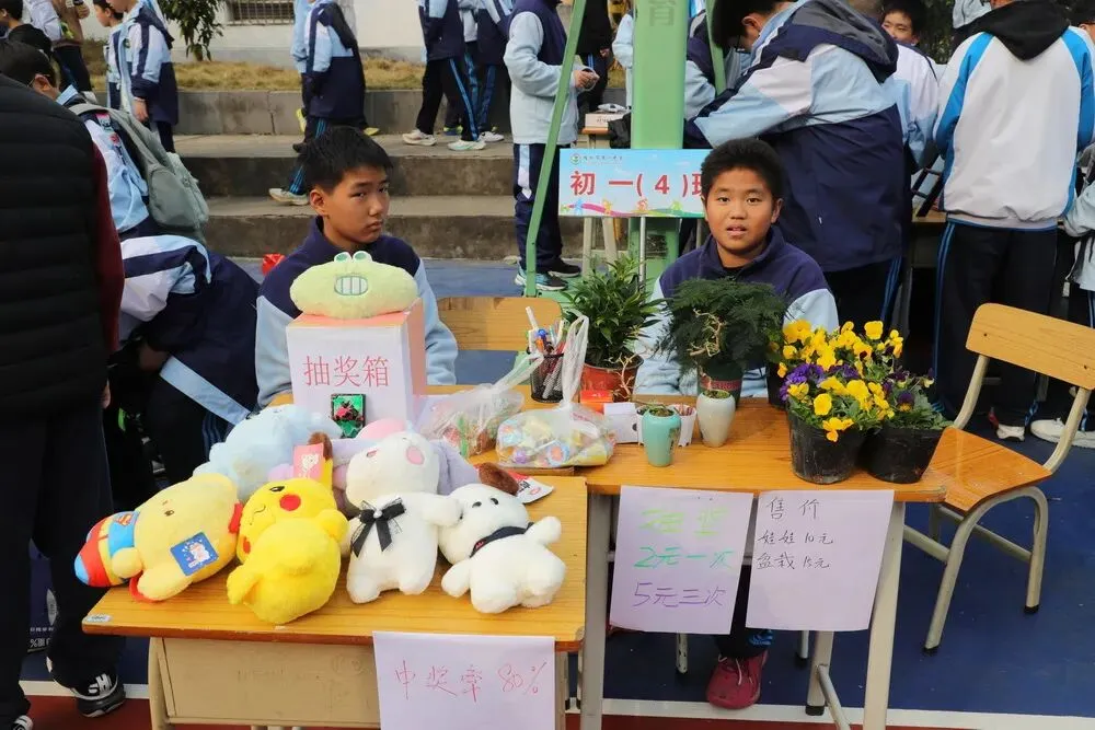 不少班级还推出了创新营销手段:有的设置抽奖环节,有的推出“买一送一”促销,有的设计互动游戏吸引客流。校园里吆喝声、欢笑声、讨价还价声此起彼伏,汇成一曲生动的实践教育交响乐。