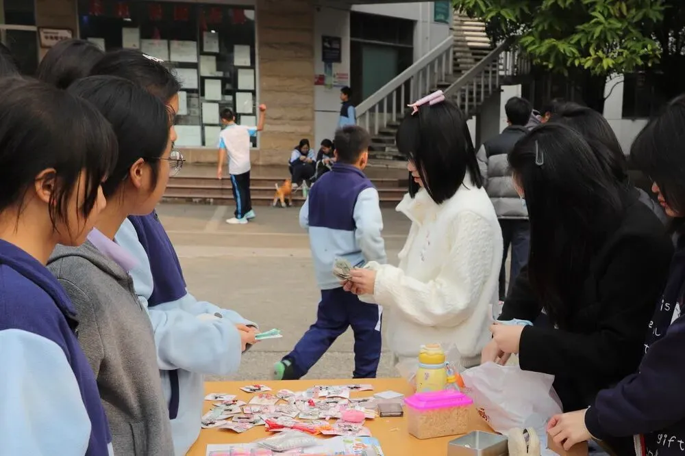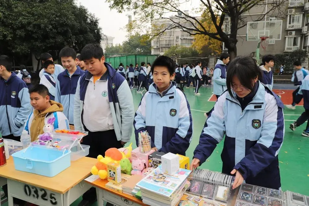 高一(5)班的张同学担任着“销售经理”的角色,她分享道:“我们提前两周就开始筹备,做了市场调研,分析了同学们的消费偏好。今天我们的‘多肉植物盲盒’特别受欢迎,已经补了两次货了!”