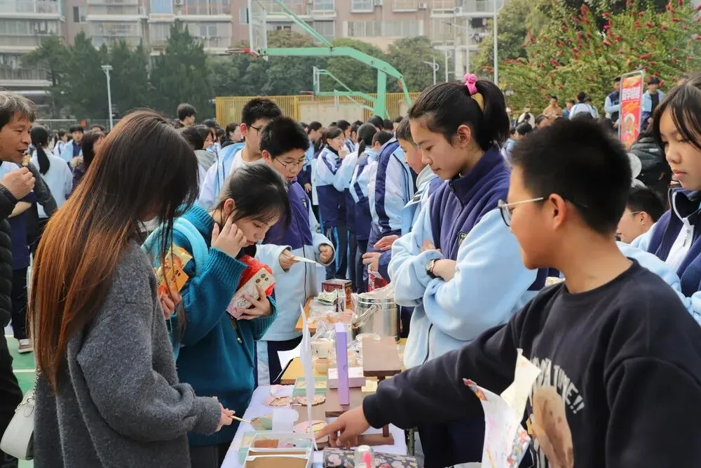 “我们班主打的是‘怀旧美食’,专门复刻了家长们小时候吃的传统点心。”高二(3)班的李同学一边忙着包装商品一边介绍,“从配方研究到制作都是我们自己完成的,虽然过程不容易,但看到大家喜欢,特别有成就感。
