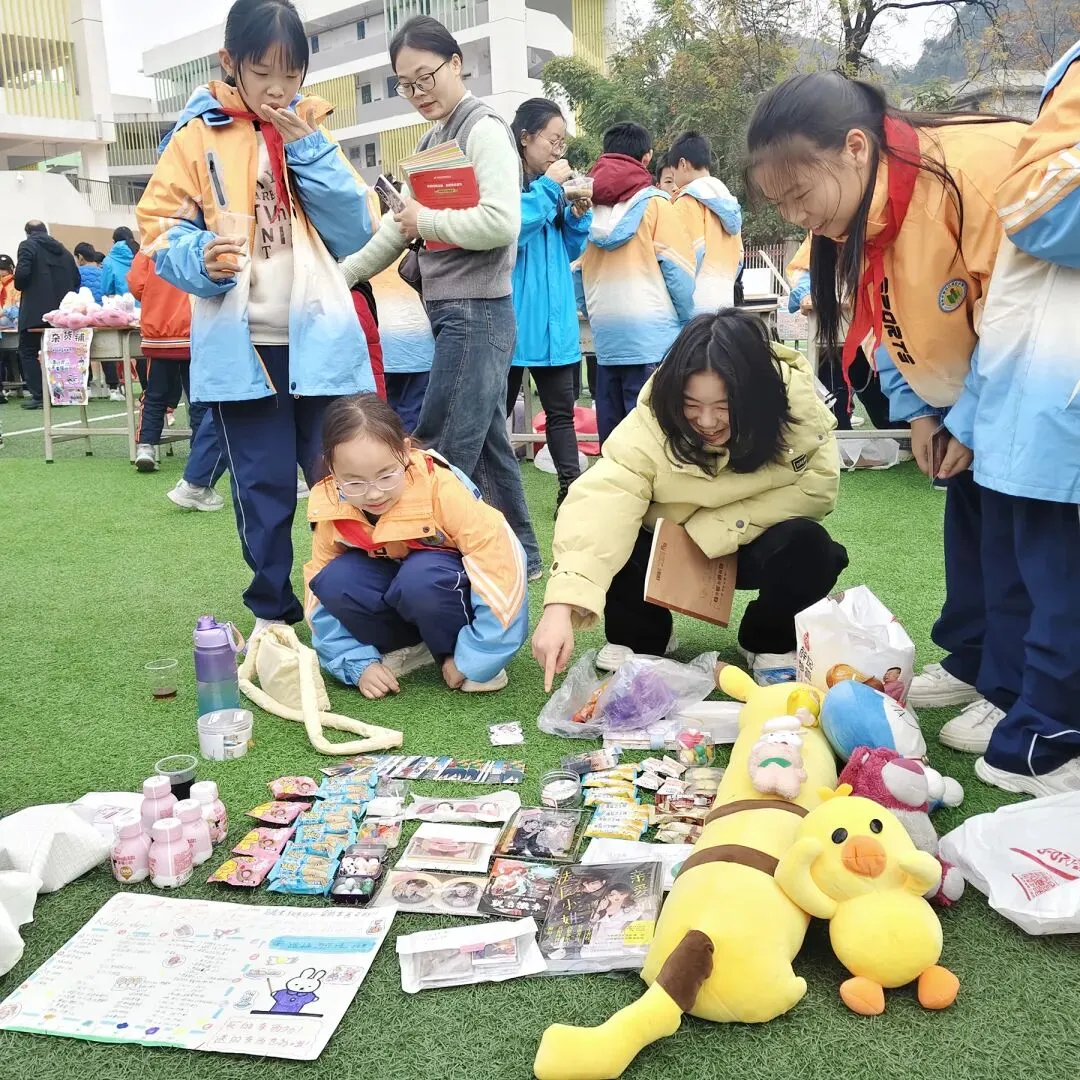 元旦新春的喜庆氛围,从这场热闹市集开始!师生互动、生生交易,在讨价还价的趣味过程中拉近距离、凝聚校园活力;琳琅满目的 “商品”、创意十足的摊位布置、诚意满满的促销活动,让校园变成充满烟火气的欢乐海洋,提前感受节日的温暖与热闹。
