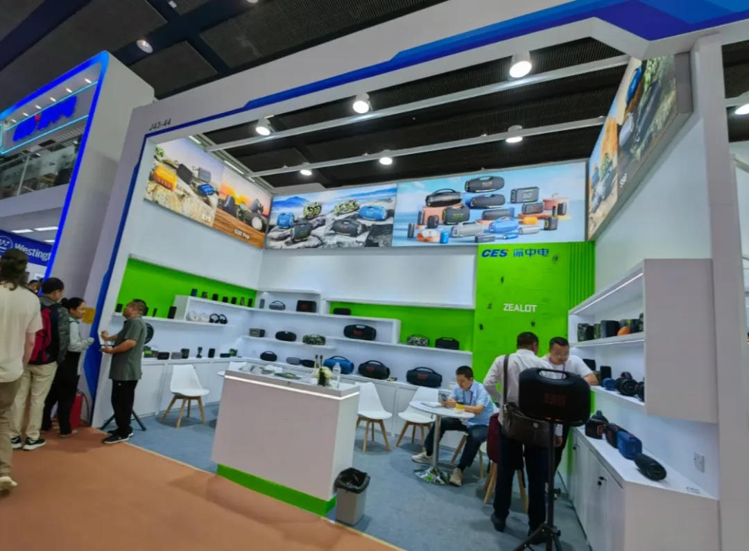 落地呈现:iFamily以蓝白渐变色调搭配发光标识,营造科技感与未来感,契合年轻消费群体审美;ETEK采用红白色调+通透式开放式布局,减少空间压迫感,提升展台呼吸感,适配大众消费类电器的亲民调性;ZEALUT则以绿白撞色打破常规,搭配产品场景化贴图,注入年轻活力,精准匹配时尚家电的品牌定位,在简约中透出个性张力。
