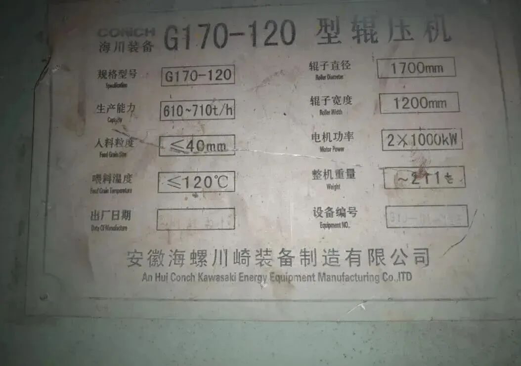 2、170-120辊压机,采用重齿减速机、湘潭电机,成色极佳;