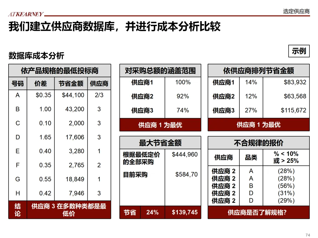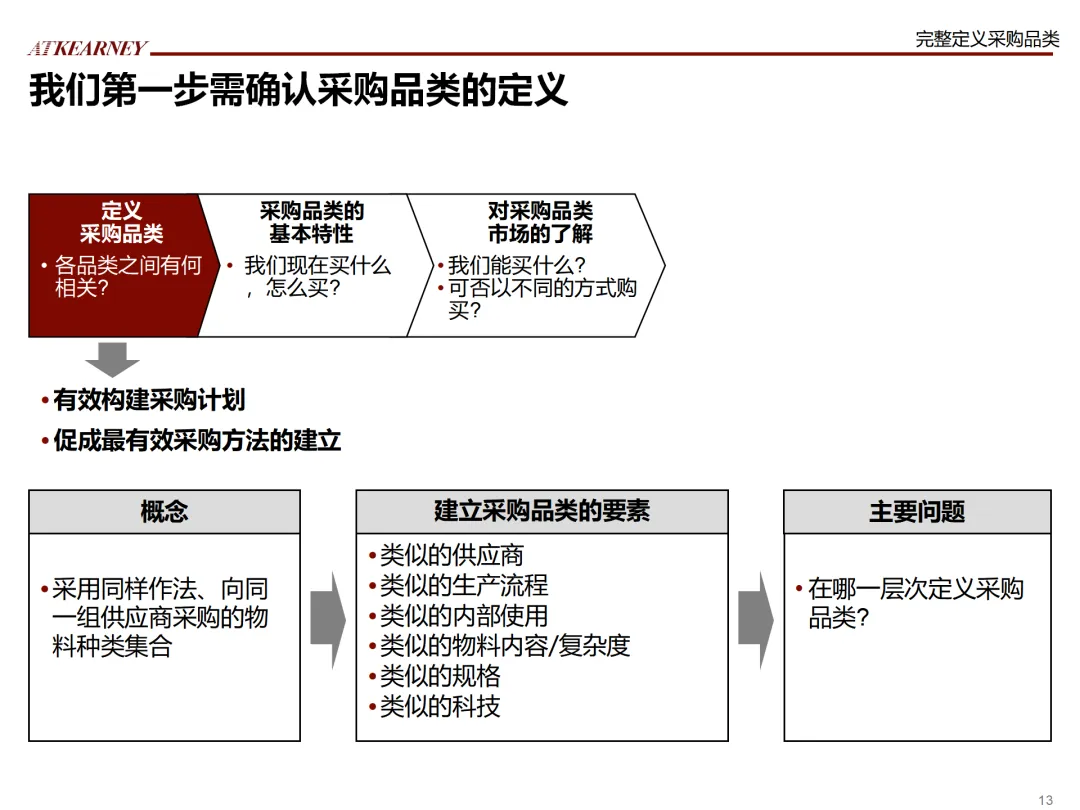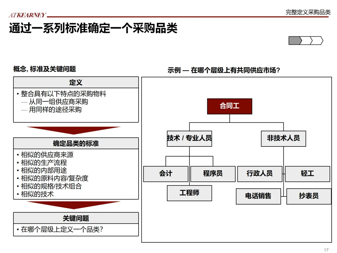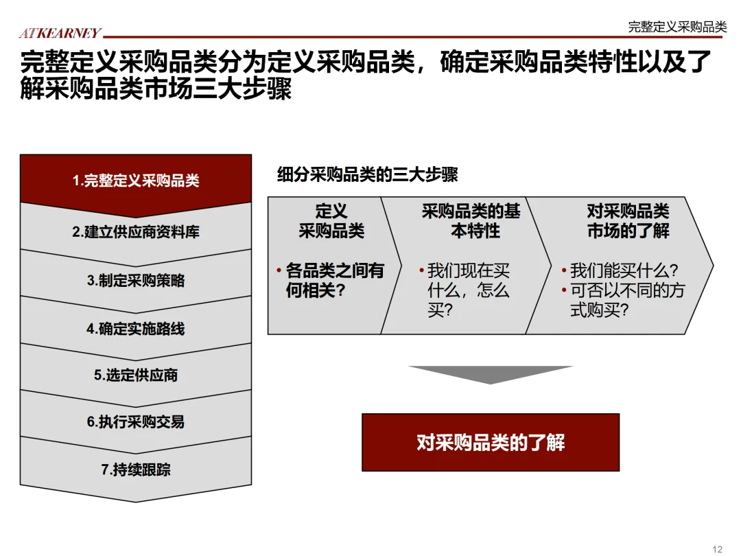 然而,许多企业的采购实践仍停留在"货比三家、讨价还价"的战术层面,陷入"只压价、不控本"的误区:供应商分散、品类管理混乱、供应链隐性成本高、事务性工作占用大量精力……这些痛点让采购部门难以成为企业的价值创造者。全球知名咨询公司科尔尼(A.T. Kearney)于20世纪80年代提出的战略采购理念,以及配套的七步战略采购法,彻底颠覆了传统采购逻辑。它以"最低总成本"为核心,通过系统化、数据驱动的闭环流程,让采购从"被动花钱"升级为"主动创值",已为全球500强三分之二的企业提供了成功支撑。第一步:完整定义采购品类——摸清"买什么",找准"发力点"明确采购品类的范围、特性和市场环境,通过支出魔方工具从"谁采购/使用、买了什么、从哪家购买"三个维度识别成本节省机会。第二步:建立供应商资料库——筛选"优质伙伴",筑牢"合作基础"发掘潜在供应商,建立包含品质、技术、服务、成本等多维度的评估框架,通过加权评分法筛选出合格候选供应商。第三步:制定采购策略——精准"定位品类",选对"方法论"运用采购品类定位方阵,根据品类对业务的影响和供应市场复杂度,选择差异化采购策略(采购量集中、最优价格评估、全球采购等)。第四步:确定实施路线——选对"路径",降低"落地风险"决定采用供应商筛选流程还是供应商发展流程,规划具体的实施步骤和时间表。第五步:选定供应商——精准"谈判",锁定"最优伙伴"通过多轮谈判,明确交易条款,建立稳定的合作关系,关注"总成本最优"而非"单一最低价格"。第六步:执行采购交易——平稳"落地",衔接"新旧合作"推进新供应商引进或现有供应商合作升级,确保采购流程顺畅过渡,避免业务中断。第七步:持续跟踪监控——动态"优化",保持"策略活力"建立监督评估体系,响应市场、供应商和内部需求的变化,确保采购策略长期有效。完整版以上传星球,想要一次性获取的小伙伴,加入下方星球即可如何获取更多资料下载?