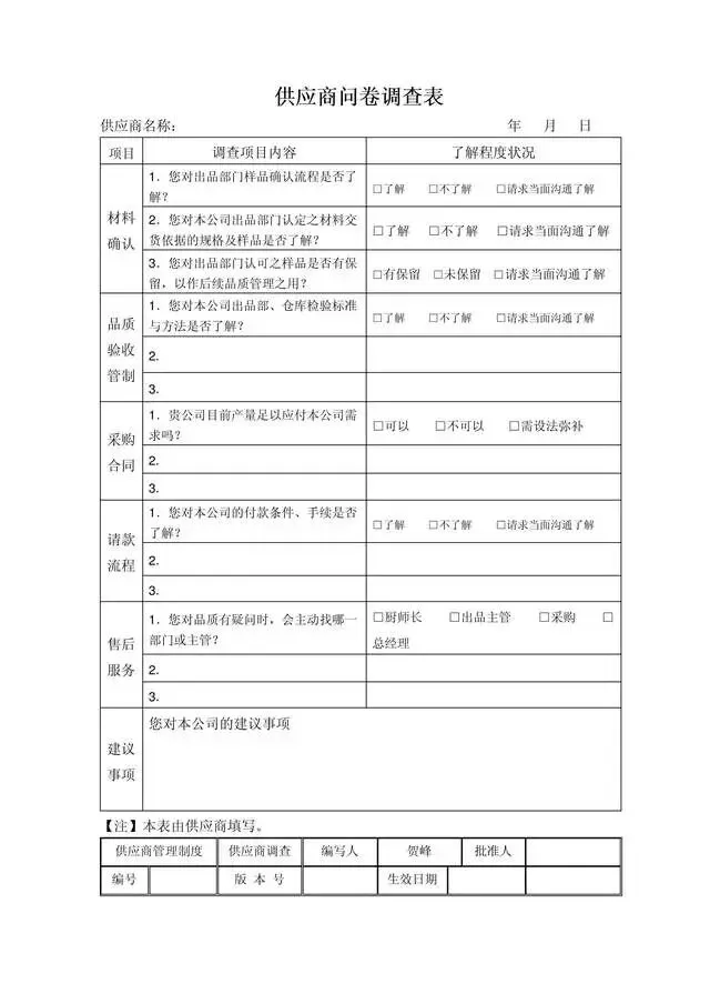 这不是简单的信息登记表,而是供应商的“体检报告”:
