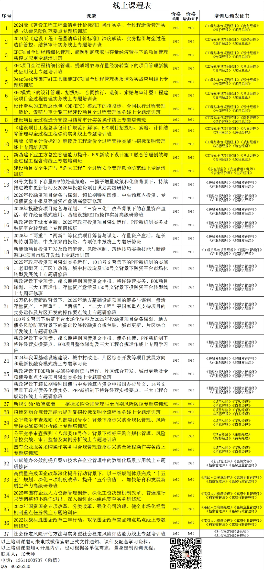 日前,国务院办公厅印发《政府采购领域“整顿市场秩序、建设法规体系、促进产业发展”三年行动方案(2024一2026年)》(以下简称《行动方案》)。《行动方案》从国家层面提出未来三年政府采购重点改革任务的路线图,是落实中央全面深化改革委员会《深化政府采购制度改革方案》的重要举措。为贯彻落实《深化政府采购制度改革方案》,优化政府采购营商环境,推进政府采购标准化建设,2024年财政部先后印发了《政府采购合作创新采购方式管理暂行办法》(财库(2024)13号)、《政府采购货物买卖合同(试行)》(财办库(2024)84号)等多部关于政府采购需求标准、绩效评价和推进优质优价采购方面的文件。为了提高政府采购人员的政策水平和业务能力,我单位决定举办“政府采购三年行动方案解读、质疑投诉处理及招标采购全流程实务专题培训班”。请各单位积极组织选派相关人员报名参加,现将有关事项通知如下:2.改革趋势:深化政府采购制度改革方案,“整、建、促”三年行动方案2.《公平竞争审查条例实施办法》市场监管总局99号3.以不合理条件对供应商实行差别待遇和歧视待遇的判断4.采购人如何合理引导评审委员会启动异常低价审查机制1.参与财政部及其他国家部委、行业协会政策制定的专家;2.来自机关、事业单位具有政府采购理论与实践的权威专家。各地政府采购、招投标行政主管部门,各级公管办、行政服务中心、公共资源交易中心、政府采购中心的相关人员;高等院校、医疗系统等企事业单位的招标采购、合同管理、工程管理、法律事务、监察审计等相关人员;招标代理机构相关人员。3600元/人(含授课、场地、资料、午餐等费用);住宿统一安排,费用自理。统一颁发电子版结业证书,可在官网查询。注:组织其他单位或同一单位报名参加6人以上可减免1人培训费用。来电或加微信索取正式文件通知、各主题课件及配套学习资料!
