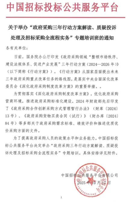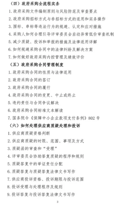 政府采购三年行动方案解读、质疑投诉处理及招标采购全流程实务”专题培训班