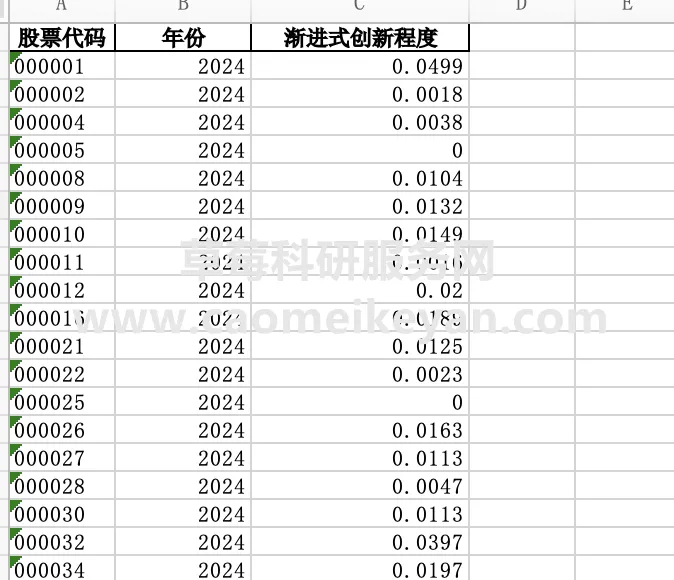 1、资料名称:2024-2011年上市公司企业渐进式创新数据、渐进式创新锁定数据