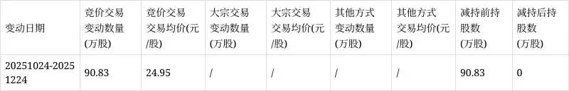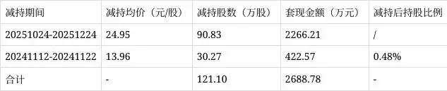 12月26日消息,源飞宠物股东晟进创业于2025年10月24日至2025年12月24日,通过竞价交易方式减持90.83万股,占总股本的0.48%,占晟进创业持股总数的100.00%。套现金额约合2266.21万元。