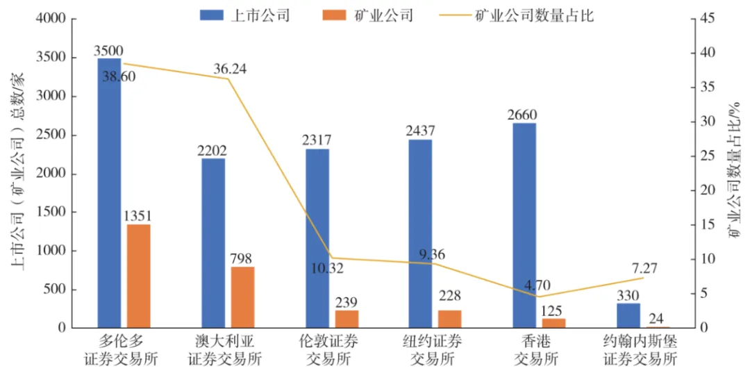 全球范围内,矿业资本市场高度集中于多伦多、澳大利亚、伦敦、纽约、香港及约翰内斯堡六大证券交易所。这全球六大风险勘查市场既是全球勘查资本中心,也是矿业投资市场资金的主要集散地。这些市场在矿业企业融资、风险资本募集和全球资源定价中发挥着不可替代的作用,并基于其地域特征、监管框架及历史沿革,形成了差异化的上市企业结构特征与投资生态。
