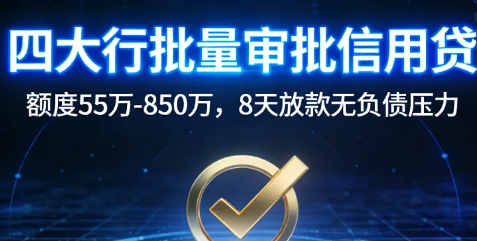 企业融资破局!4大行批量审批55万-850万信用贷,8天放款无负债压力