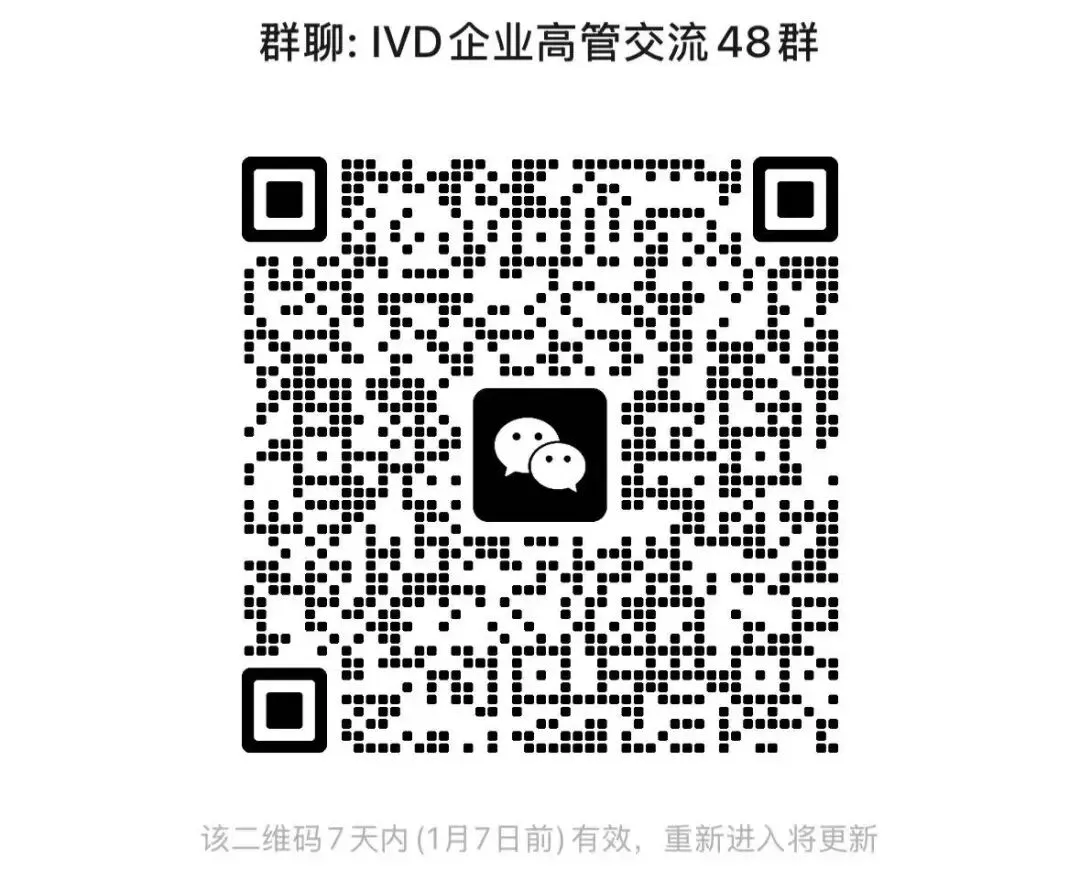 体外诊断观察特成立IVD企业高管交流群,交流IVD行业热点,赶快扫码进群吧!若二维码失效,请扫描文末二维码,添加小编个人微信,小编将邀请您进群。