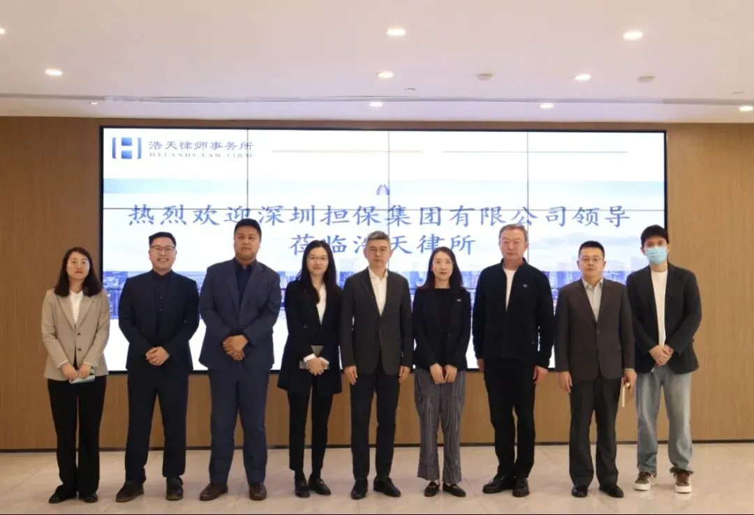 2025年12月30日,深圳市中小企业融资担保有限公司总经理张晓杨、副总经理杨蓉婧、风控部法务经理廖侑宏、福田分公司项目经理余嘉俊一行到访北京浩天(深圳)律师事务所(以下简称“浩天深圳”)。会议由青工委主任、高级合伙人任永东律师担任主持,浩天深圳事务所主任、高级合伙人王建林律师,管委会主任、高级合伙人高强律师、管委会委员、高级合伙人田国昌律师,专职律师曹娇慧、张远卓参与交流座谈会。双方围绕在经济新形势下如何加强协同,共同服务实体企业展开深入探讨,并达成多项合作共识。