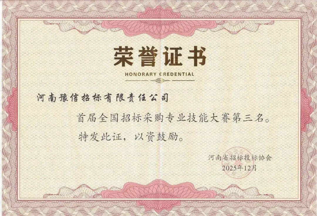 近期,河南豫信招标有限责任公司(以下简称:豫信招标公司)在首届全国招标采购专业技能大赛中荣获全国第三名;公司业务骨干赵学伟、张娜获评“河南省优秀个人奖”。其中,赵学伟同志作为河南省代表队成员,助力河南组夺得全国团体赛二等奖。