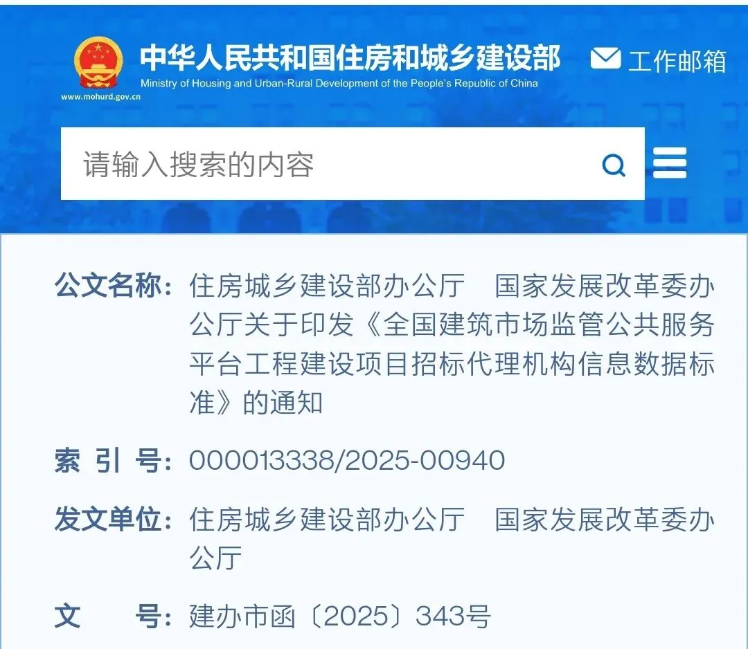 全国建筑市场监管公共服务平台工程建设项目招标代理机构信息数据标准
