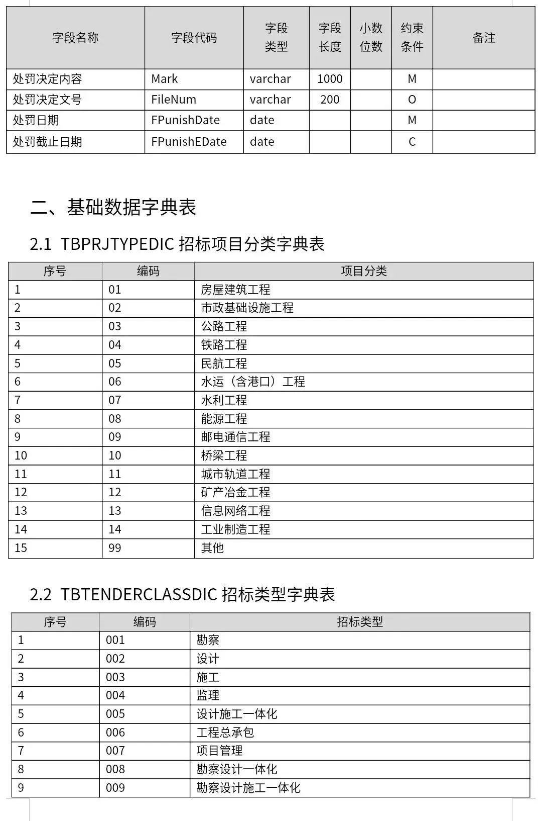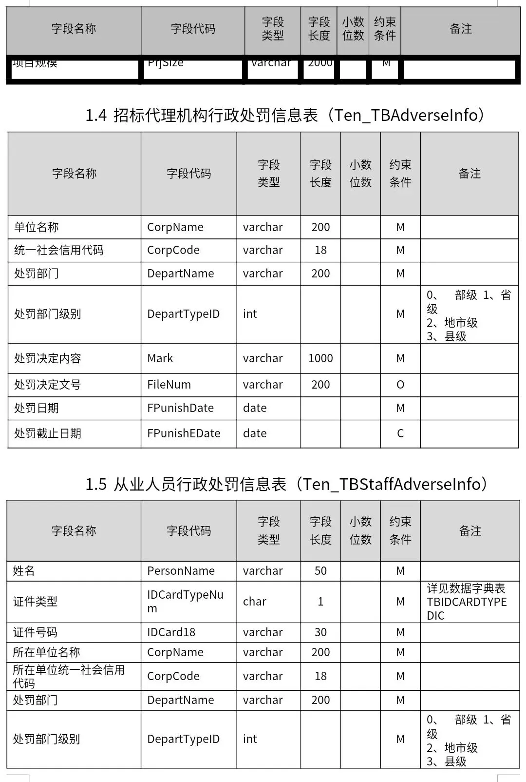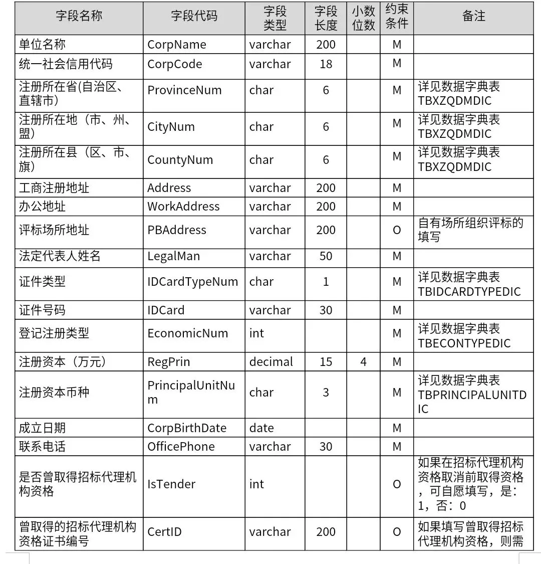 一、招标代理机构信息登记数据标准招标代理机构基本信息表(表名:Ten_TBTenderCorpBasicInfo)