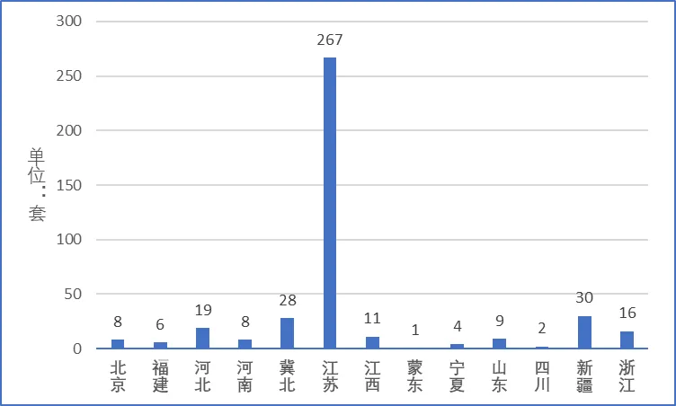 从各省招标情况来看,网络配线架共涉及13家项目单位,其中,国网江苏省电力有限公司招标267套,占比65.28%;国网新疆电力有限公司招标30套,占比7.33%;国网冀北电力有限公司招标28套,占比6.85%。